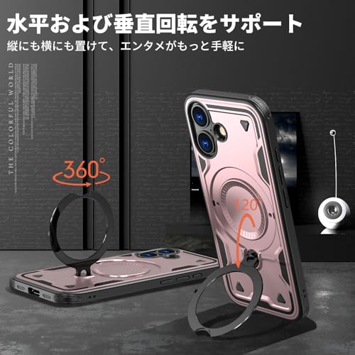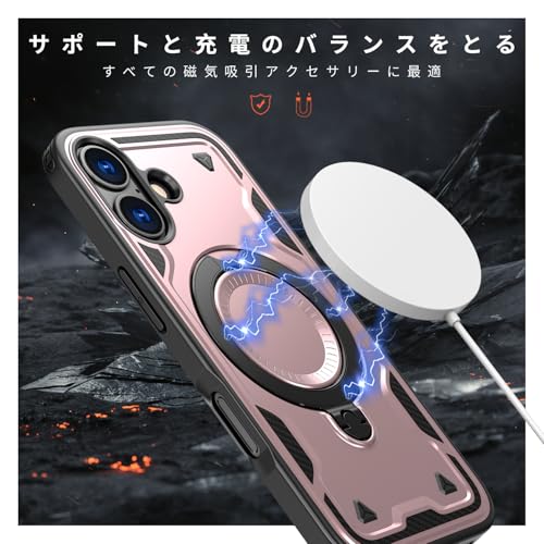 iPhone 17 対応 ケース 耐衝撃 スタンド付き MagSafe対応 カバー リング TPU+PC ワイヤレス充電 米軍MIL規格取得 スタンド機能 (ローズゴールド)117-IP17-05