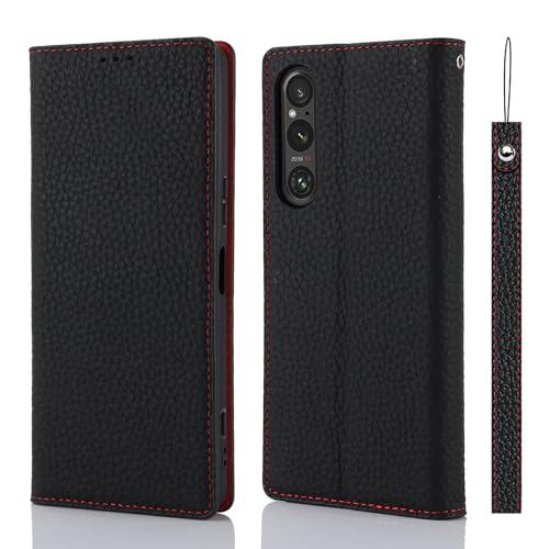 Xperia 1 V ケース 手帳型 ソニー エクスペリア1 V スマホケース SO-51D カバー SOG10 スマホケース Sony Xperia 1 V カバー本革 Jaorty 内蔵マグネットカードホルダ付き スタンド機能 人気-ブラック