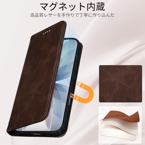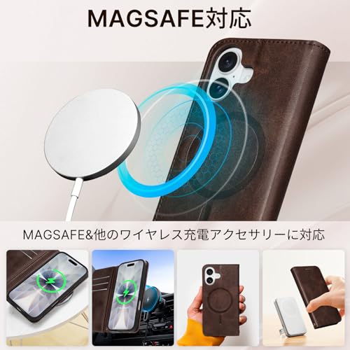 Shlybaay iPhone 17 用 ケース 手帳型 MagSafe対応 カード収納 アイフォン 17 用 カバー ワイヤレス マグネット付き いphone17 手帳型ケース マグセーフ スタンド機能 RFID ブロッキング 6.3インチ W1M ブラウン