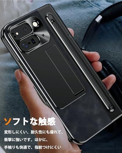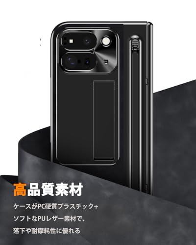 NINKI コンパチブル Google Pixel 10 Pro Fold 交換用ケース ペン付き ペン収納 ヒンジ保護 キックスタンド付き 折り畳み式 PC+PUレザー スクリーンフィルム一体型 レンズ保護 スタンド機能 すり傷防止 グーグル ピクセル 10プロ フォールド 5G スマホ カバー(ブラック)