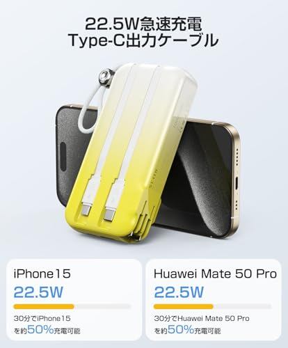 最大22.5W出力: モバイルバッテリーとしても急速充電器としても最大22.5W出力で、iPhone 16シリーズ等にも充電が可能です。