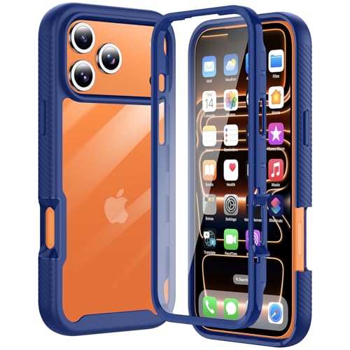 Aunote iPhone17pro ケース クリア 全面保護 ワイヤレス充電対応 米軍MIL規格 耐衝撃 スマホケース Phone17pro ケース 透明 カバー ブルー