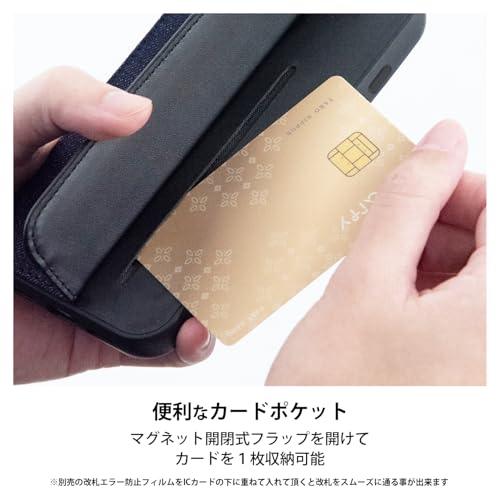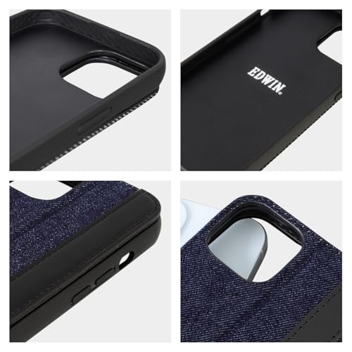 【 EDWIN 正規品 】 iPhone 16 Pro ケース 背面 「 スタンド付き背面 」 デニム カード収納付き スタンド フラップ 6.1インチ アイフォン16プロ iPhone16Pro 用 ブランド スマホケース カバー (インディゴ, iPhone 16 Pro)
