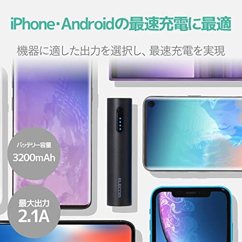 エレコム モバイルバッテリー/おまかせ充電対応/3200mAh/2.1A/ブラック