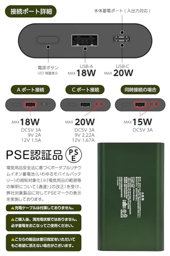 LOGOSモバイルバッテリー 10000mAh PD20W対応 LG-LP124G【グリーン】