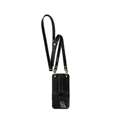 COGURE 交換 スマホケース iPhone15ProMax ケース ショルダーストラップ 本革 落下防止 耐衝撃 ギフトボックス付き COPG ブラック【Black】