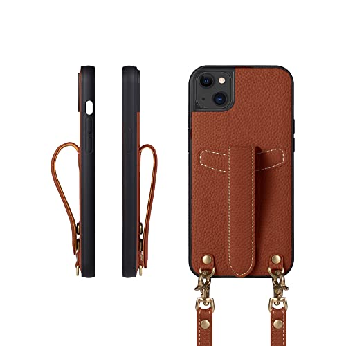 COGURE 交換 スマホケース iPhone15Plus ケース ショルダーストラップ 本革 落下防止 耐衝撃 ギフトボックス付き COPG キャラメル【Caramel】