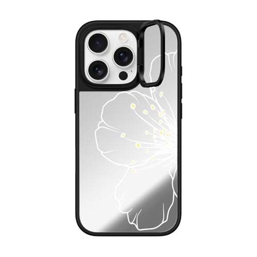 ミラー リングスタンド MagSafe対応 iPhone 16 Pro ケース [キックスタンド / 1.5mからの落下試験をクリア (MIL規格1倍相当) / ワイヤレス充電およびMagsafe対応] - Half Sakura - シルバー (シルバーバンパー)