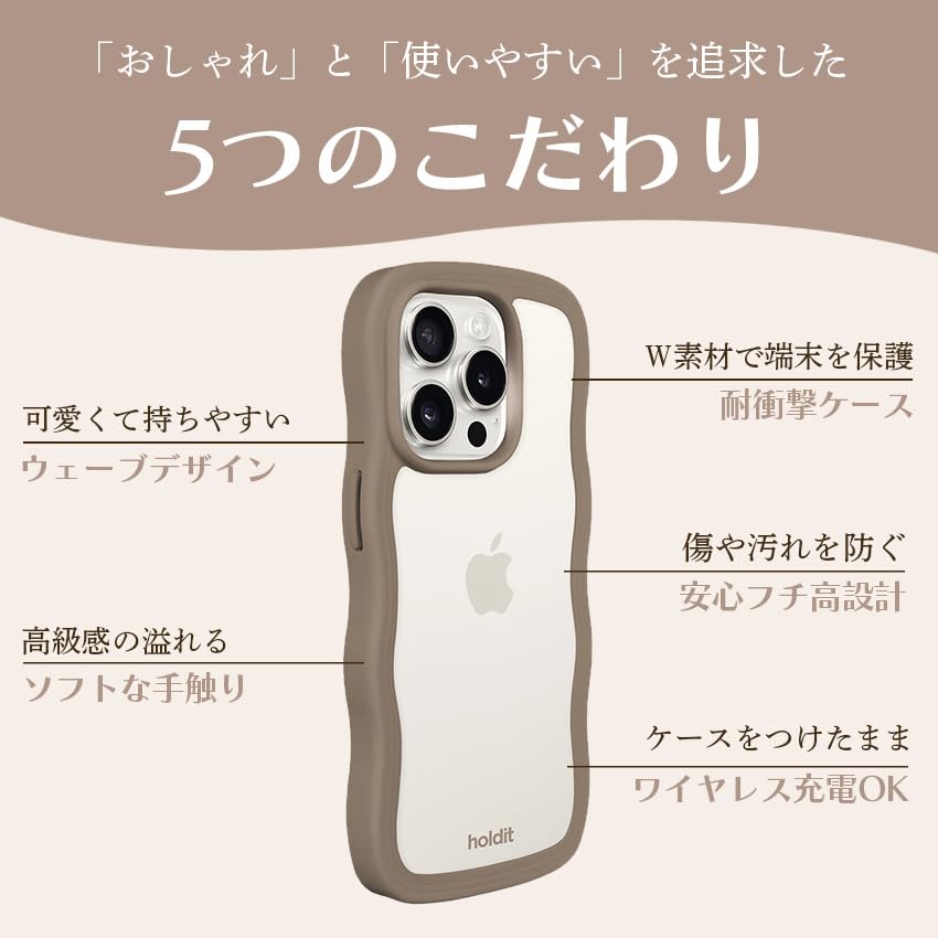Holdit 耐衝撃 スマホケース (iPhone 16 / シエラ ブルー/クリアタイプ) 日本初上陸モデル スマホ ケース カバー なみなみ ウェーブ (衝撃吸収/TPU/ワイヤレス充電可能) iphoneケース
