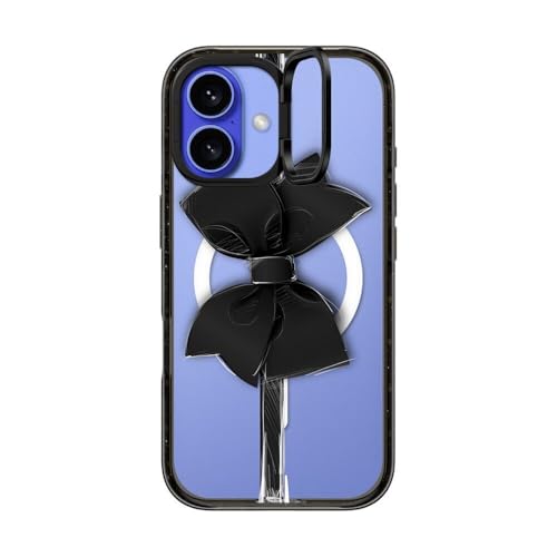 インパクト リングスタンド MagSafe対応 iPhone 16 ケース [キックスタンド / 2mからの落下試験をクリア (MIL規格3倍相当) / ワイヤレス充電およびMagsafe対応] - Black Bow - クリア ブラック