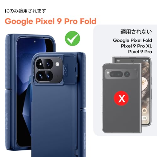 TONGATE for Pixel 9 Pro Fold ケース Magsafe対応、[ヒンジ保護&ガラススクリーンプロテクター&カメラカバー付き] Google Pixel 9 Pro Fold用耐衝撃頑丈キックスタンドスマホケース、ブルー