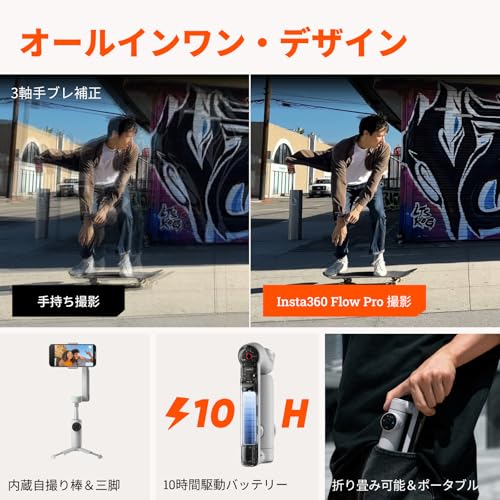 Insta360 Flow Pro - スマートフォン用AI搭載ジンバル、Apple DockKit対応、360度無限パントラッキング、3軸手ブレ補正、内蔵三脚、ポータブル&折り畳み可能、AI追跡