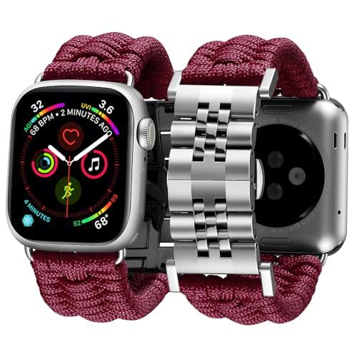 コンパチブル Apple Watch バンド 49mm 46mm 45mm 44mm 42mm 41mm 40mm 38mm コンパチブル アップルウォッチバンド 編み込み 550 パラコードと鋼ベルト 頑丈 コンパチブル iWatch Series 11/10/9/8/7/6/5/4/3/2/1 Ultra3/2/1 SE3/2/1(38/40/41/42mm,プラム/シルバー)
