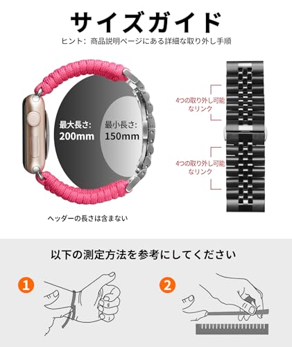 パッケージに含まれるもの:コンパチブル apple watch ベルト パラコード x 1、リンクリムーバー x 1。バンドについてご質問がございましたら、迅速なご返答とご満足いただける解決策をご提供いたします