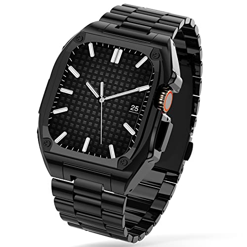 [CAGOS] コンパチブルApple Watch バンド ステンレスケース一体型 49mm ステンレス鋼カバー付き アップルウォッチバンド 頑丈なステンレスベルト 二重保護 Apple Watch Ultra/Ultra2 49mmに対応 シリコンケース内臓 おしゃれ 耐久性 耐衝撃 落下防止 装着簡単 長さ調節器具付き ビジネス風 (49mm, ブラック)
