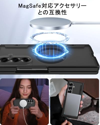 【Magsafe対応 & 超吸収マグネット搭載】このGalaxy Z Fold7 coverの背面パネルには強力なマグネットが内蔵されており、MagSafe対応充電器やMagSafe専用の各種アクセサリーをしっかりと取り付けることができます。また、ワイヤレス車載充電器、バッテリー、車載スタンド、リングなどのMagSafe専用アクセサリーにも対応しています。これにより、毎日の使用がさらに便利になります。