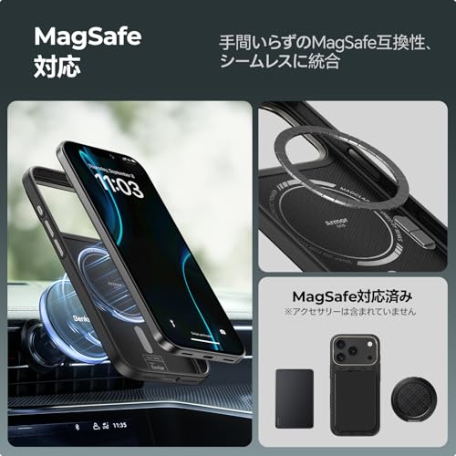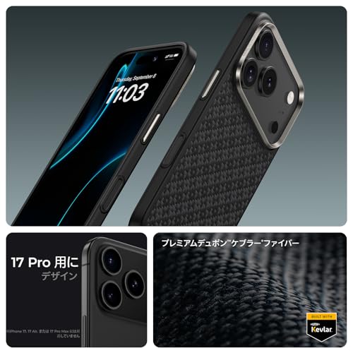 BENKS ArmorGrid ArmorPro iPhone 17 Pro用ケース MagSafe対応 マグネット搭載 軍用規格 耐衝撃 耐久性 レンズ保護 カメラコントロールボタン付き いiphone17 Proケース デュポン製ケブラー600Dアラミドファイバー製 スマホケース クラシック シンプル ミニマル アイフォン17 Proケース(ブラック/黒)