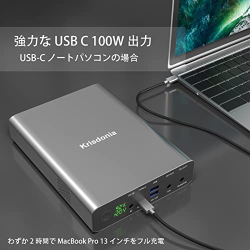 ポータブル電源 Krisdonia 64000mAh 大容量 PD 100W USB-C出力 モバイルバッテリー 超急速充電対応 DCポート+USB-Cポート+USB-Aポート 予備電源 ノートパソコン/MacBook/iPhone/Android等対応 緊急・災害時バックアップ用電源