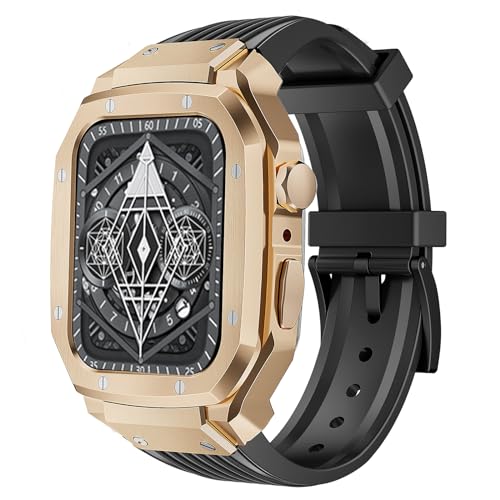 ANYOI 対応 アップルウォッチ バンド 合金製 Series 9/8/7/SE3/SE2/SE/6/5/4 Apple Watch バンド ケース 一体型 バンド 交換ベルト あっふウォッチバンド 耐衝撃 通気 男女通用(45mm/44mm,ローズゴールド)