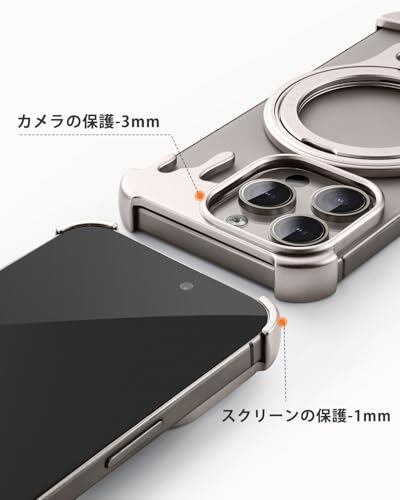 【マグネットに対応、360°回転スタンド】iPhone16Promax用のフレームレスケースは38個のN52強力マグネットを装着し、完璧なフィット感を実現します!どんなに振っても外れないです!また、モバイルバッテリー、カーマウント、スタンド、リングなど、ほとんどのマグネット対応アクセサリーと完璧に互換性があります。360°回転スタンドが搭載して、万能のスタンドようになります。ワイヤレス充電には対応していません。