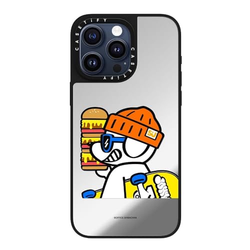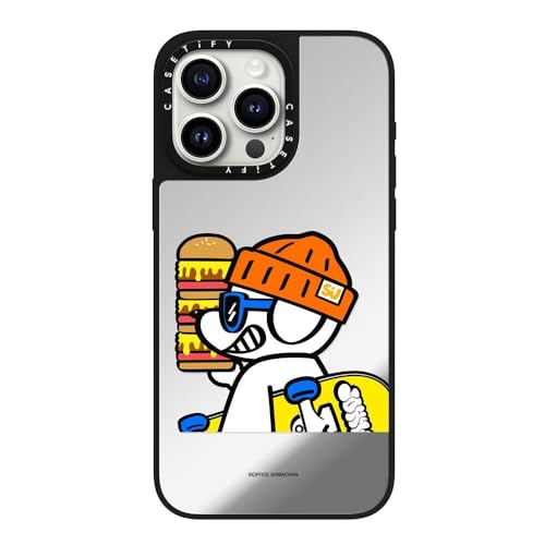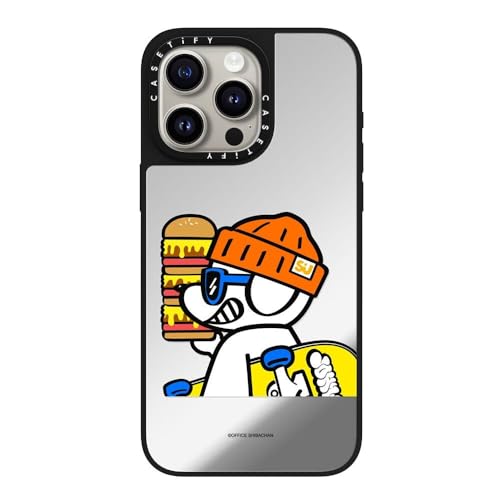 MagSafe 対応ミラー iPhone 15 Pro Max ケース [反射性 / 1.5mからの落下試験をクリア / MagSafe に対応] - What's UP JOHN! (Mega burger) - シルバー (ブラックバンパー)
