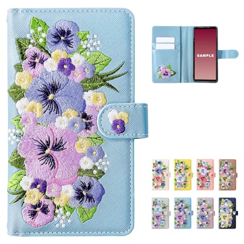 Galaxy S10 専用 SC-03L SCV41 ケース カバー 手帳型 SC-03Lケース SC-03Lカバー SCV41ケース SCV41カバー ギャラクシー GalaxyS10 ハンドあり パンジー 刺繍 パールブルー