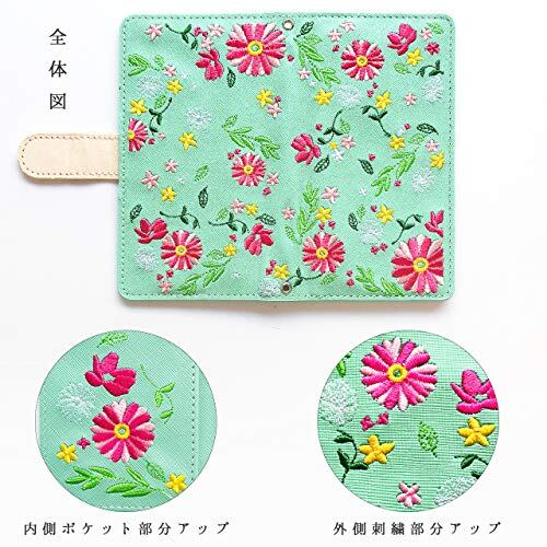 らくらくスマートフォン F-52B 手帳型 ケース カバー F52B F-52Bケース F-52Bカバー F52Bケース F52Bカバー 手帳 手帳 手帳型ケース 手帳ケース 手帳型ケース スマホケース ちょいヌメ花刺繍 ミント
