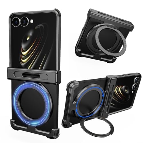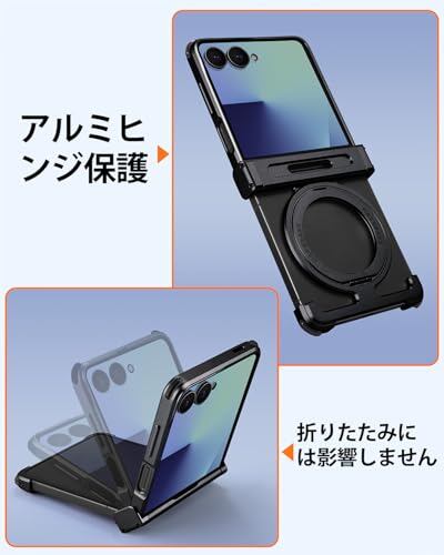 NIFBANG πケース Samsung Galaxy Z Flip7 用のバンパーケース ギャラクシーフリップ7用 アルミバンパー メタルフレームレス マグネット搭載 ワイヤレス充電不可 耐衝撃性 米軍規格 縦横両対応 落下防止 レンズ保護 四隅エアバッグ ミニマリスト薄型ギャラクシーフリップ7用カバー かっこいい (ブラック)