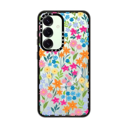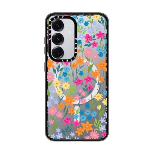 インパクトマグネティックSamsung Galaxy S25 ケース [スリム / 2.5mの落下試験をクリア (MIL規格4倍相当) / ワイヤレス充電およびMagsafe対応] - Bright Spring Flowers - ブラック