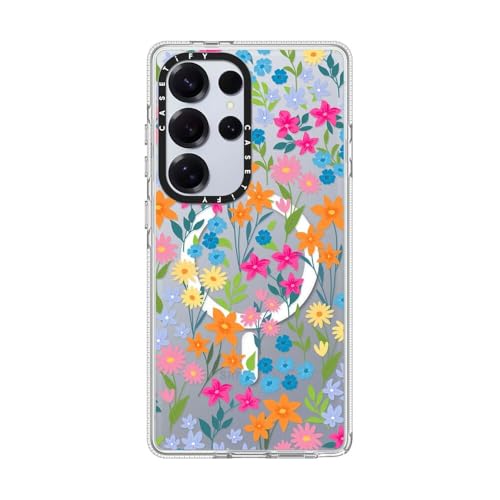 クリア Samsung Galaxy S25 Ultra ケース [黄ばみにくい素材 / 2mからの落下試験をクリア/ MagSafe対応] - クリア - Bright Spring Flowers - Daisy Floral Pattern