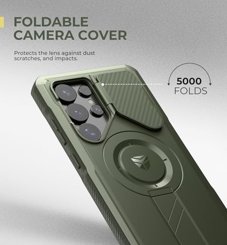 Dexnor Samsung Galaxy S25 Ultra用 ケース カメラカバー&調整可能キックスタンド&内蔵スクリーンプロテクター マグネット式 耐衝撃 バンパーケース 軍用級頑丈防護カバー(グリーン)