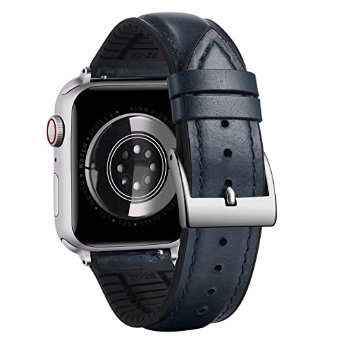 コンパチブル Apple Watch バンド 49mm 46mm 45mm 44mm 42mm コンパチブル アップルウォッチバンド オイルワックスレザー 革ベルト 内側シリコン製 通気性 コンパチブル iWatch ベルト Ultra3/2/1 SE3/2/1 Series 11/10/9/8/7/6/5/4/3/2/1 メンズ レディース(ブルー,シルバー バックル)