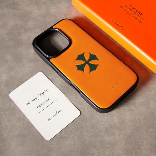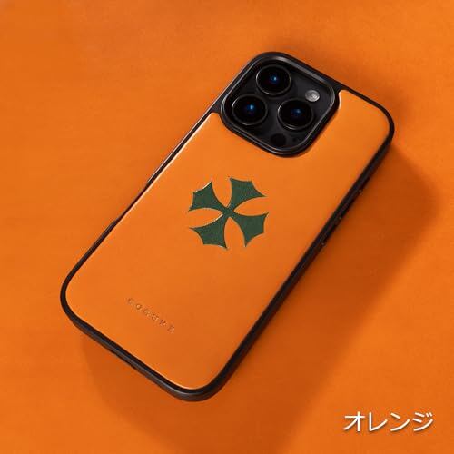 COGURE スマホケース iPhone15ProMax用 ケース 本革 イタリアンサドルレザー 耐衝撃 シンプル おしゃれ ギフトボックス付き COTCross クロスモチーフ オレンジ