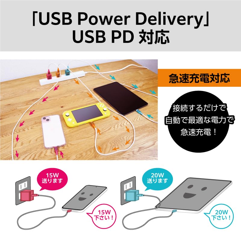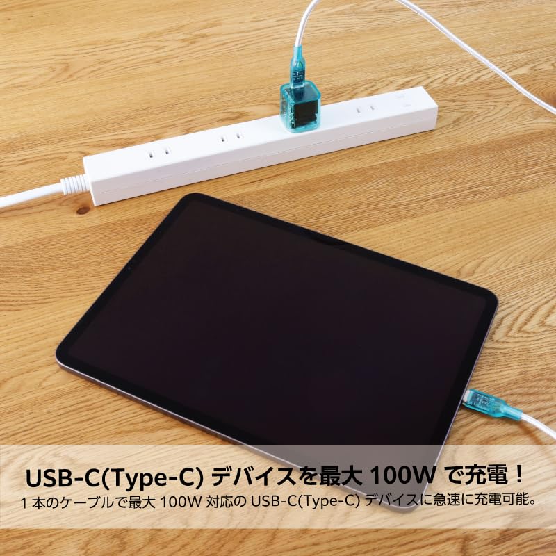 【見た目は平成レトロ、中身は最新!】窒化ガリウム(GaN)採用により小型で軽量なACアダプタ。さらにUSB Power Delivery(USB PD)対応で例えばiPhone15などのUSB PD充電に対応した機器をつなぐと最適な電力でより早く、安全に高速充電することができます。 美しく見せるをコンセプトに基盤を設計したUSB-C(Type-C)ケーブル。USB Power Delivery(USB PD)100W対応な為、例えばiPhone15などのUSB PD充電に対応した機器をつなぐと最適な電力でより早く、安全に高速充電することができます。
