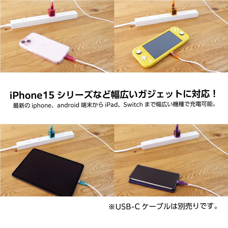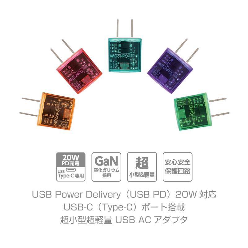 【平成レトロdeフューチャーなカッコかわいい基盤まで見えるスケルトンボディ】平成の世に現れ一世を風靡したスケルトンデザイン。令和の世にスマートフォンやタブレットなどのガジェットの充電には欠かせない基盤まで見えるACアダプタとUSB-C(Type-C)ケーブルとしてよみがえりました。 カラーは「ブルーベリー」「グレープ」「タンジェリン」「ライム」「ラズベリー」のポップな5色をご用意。