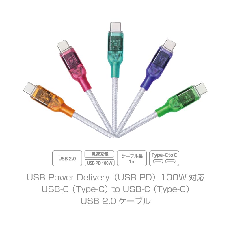 【USB-Cケーブル詳細情報】コネクタ形状 USB2.0 USB-C(Type-C)-USB-C(Type-C) ケーブル長 約1m(コネクタの長さも含む) 対応転送速度 最大480Mbps ※理論値 パワーデリバリー対応 USB PD 最大100W対応(20V/5A)