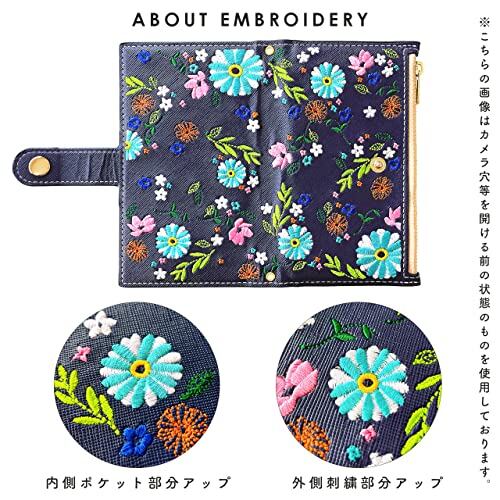 AQUOS R6 SH-51B A101SH 用 ケース カバー 手帳型 手帳型ケース SH51B SH-51Bケース SH-51Bカバー A101SHケース A101SHカバー SH51Bケース SH51Bカバー 手帳ケース スマホケース おしゃれ花刺繍 ネイビー