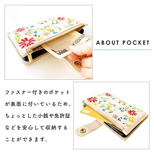 AQUOS sense 5G SH-53A sense 4 SH-41A docomo SH-M17 SH-M15 SHG03 au A004SH basic A003SH softbank lite SH-RM15 SHARP 専用 手帳型ケース。小銭や免許証等の収納に便利なファスナー付きの手帳型ケースです。上品なサフィアーノ生地に、色鮮やかな花柄の刺繍を施しています。