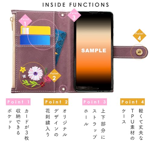 Xperia 5 SO-01M SOV41 901SO 用 ケース 手帳型 カバー 手帳型ケース SO01M SO-01Mケース SOV41ケース 901SOケース SO01Mケース Xperia5 手帳ケース スマホケース おしゃれ花刺繍 プラム