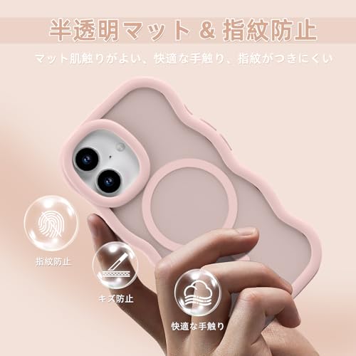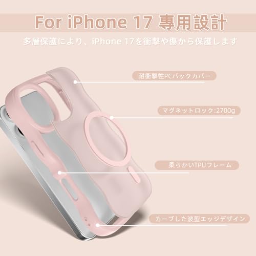 HeeNia iPhone 17 ケース MagSafe対応 耐衝撃 半透明 アイフォン17 ケース マグネット搭載 iPhone17カバー 軽量 波形 薄型 マット感 指紋防止 滑り止め 軽薄型 PC背面TPUバンパー 黄変防止 米軍MIL規格 ストラップホール付き ワイアレス充電対応 アップル17 用 (ライトピンク)