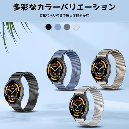 [HinZann] 22mm ステンレス 交換用ベルト、Garmin Venu 4 45mm/3 45mm/2、D2 Air X15/vivoactive 4/Active 対応、替え バンド マグネット、ミラネーゼループ、長さ調節 メッシュ 通気 スポーツバン Garmin Forerunner 570 47mm,Forerunner 265/255/255 Music 用 - ブルー