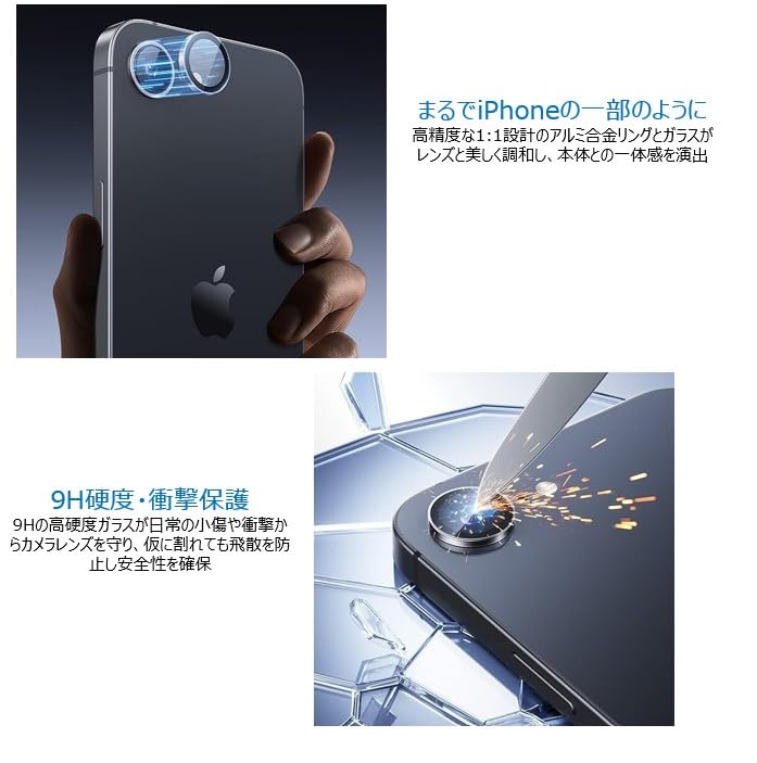 【カメラレンズ保護フィルム】:【超薄型&9H高硬度ガラスで最強保護】【95%高透過率&指紋防止で撮影も快適】【簡単貼付&洗練されたデザイン&ケース併用可】