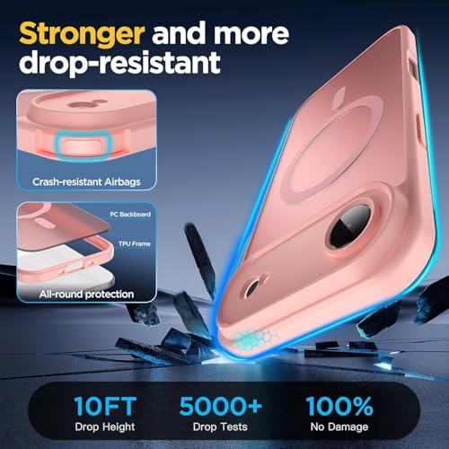 【米軍MIL規格・指紋防止・高精密Magsafe対応】 iPhone 17 Air 用 ケース 耐衝撃 滑り止め 指紋防止 米軍MIL規格 ピンク半透明