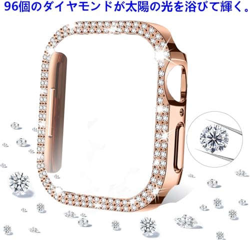 CIOODDW for アップルウォッチ10 カバー 42mm 46mmキラキラ 超簿軽量 耐衝撃 キズ防止 簡単に取り付け・取 全面保護 apple watch 10 カバー 金属 ダブルダイヤモンド アップルウォッチ 飾りフレーム Series 10に対応 オシャレ レディース ローズゴールド 42mm(液晶フィルムなし)