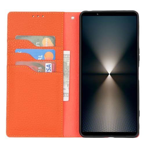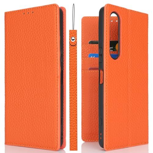 Pelanty For Sony Xperia 1 VI ケース手帳型 SO-51E SOG13 XQ-EC44 スマホケース 牛革製品 本革レザー 財布型カバー カード収納 スタンド機能 内蔵マグネット 手作り柔らかい ソニー エクスペリア1vi 第六世代 携帯カバー ストラップ付 ヘッドフォンケーブル 耐衝撃 オレンジ