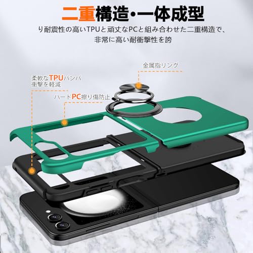 Galaxy Z Flip6 用 ケース リング付き SC-54E 保護カバー 耐衝撃 衝撃吸収 tpu 薄型 擦り傷防止 薄型 シリコン スタンド機能 車載ホルダー対応 二重構造 PC バンパー ギャラクシー Z Flip6 用 スマホケース 米軍MIL規格 全面保護 360°回転 おしゃれ 人気 携帯カバー 緑 Q44-YSZH-Flip6-LV