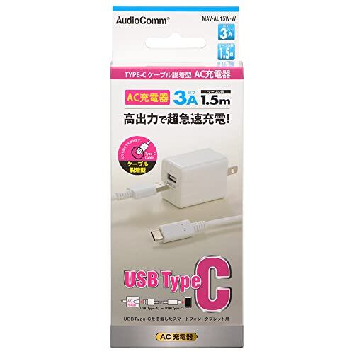 オーム電機 AudioComm AC充電器 TypeCケーブル脱着型 3A 1.5m MAV-AU15W-W 01-7166 OHM