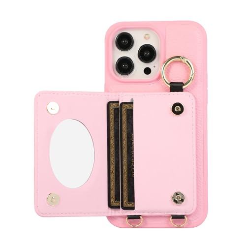 Succtopy iphone13 Pro ケース 手帳型 ショルダー スマホケース いphone13pro ケース 背面手帳型 鏡付き 肩がけ 首掛け 斜め掛け ストラップ着脱可 アイフォン13pro ケース 手帳型 財布付き リング付き 携帯ケース iphone13pro ケース アイフォン13プロ ケース 手帳 マグネット内臓式 カード収納 可愛いチェック柄 カバー(6.1インチ)ピンク