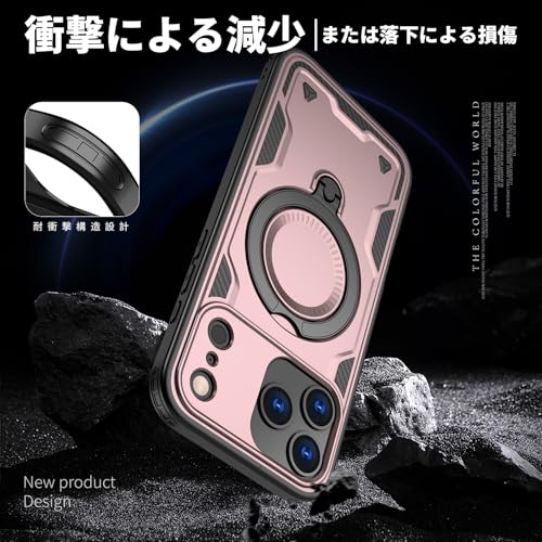 iPhone 17 Pro Max 対応 ケース 耐衝撃 スタンド付き MagSafe対応 カバー リング TPU+PC ワイヤレス充電 米軍MIL規格取得 スタンド機能 (ローズゴールド)117-IP17PM-05