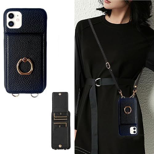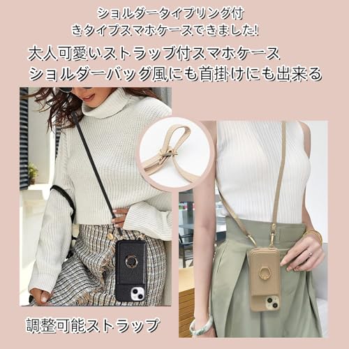 いphone12 pro 用 ケース ショルダー い phone 12 iphone12 用 薄型 かわいい スマホケース ストラップ 可愛い 携帯 背面手帳型 斜めかけ 肩掛け 首掛け 紐付き 韓国 軽量 カード収納 ショルダーケース おしゃれ 2way (ブラック)